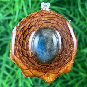 Our handmade pendants are crafted from sustainably wild-gathered Knobcone Pinecones. Every Aura Pinecone is carefully dried, aged, and cross-sectioned before being meticulously designed.