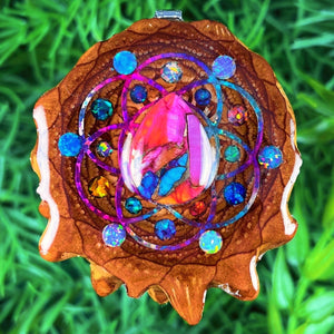 Our handmade pendants are crafted from sustainably wild-gathered Knobcone Pinecones. Every Aura Pinecone is carefully dried, aged, and cross-sectioned before being meticulously designed.