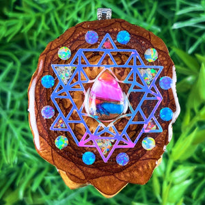 Our handmade pendants are crafted from sustainably wild-gathered Knobcone Pinecones. Every Aura Pinecone is carefully dried, aged, and cross-sectioned before being meticulously designed.