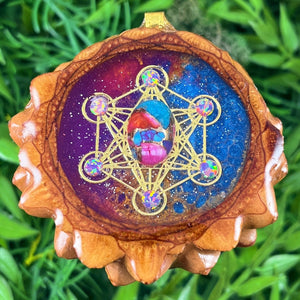 Our handmade pendants are crafted from sustainably wild-gathered Knobcone Pinecones. Every Aura Pinecone is carefully dried, aged, and cross-sectioned before being meticulously designed.