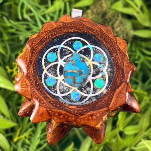 Our handmade pendants are crafted from sustainably wild-gathered Knobcone Pinecones. Every Aura Pinecone is carefully dried, aged, and cross-sectioned before being meticulously designed.