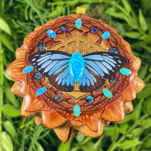 Our handmade pendants are crafted from sustainably wild-gathered Knobcone Pinecones. Every Aura Pinecone is carefully dried, aged, and cross-sectioned before being meticulously designed.