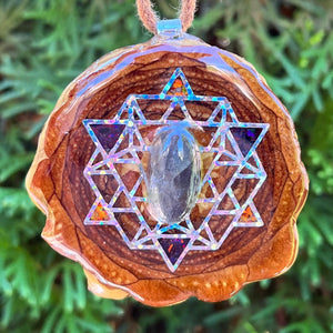Our handmade pendants are crafted from sustainably wild-gathered Knobcone Pinecones. Every Aura Pinecone is carefully dried, aged, and cross-sectioned before being meticulously designed.