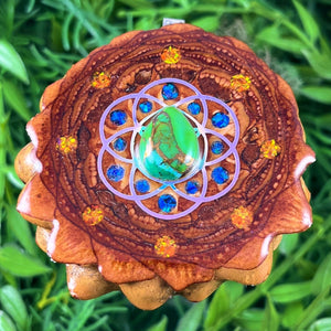 Our handmade pendants are crafted from sustainably wild-gathered Knobcone Pinecones. Every Aura Pinecone is carefully dried, aged, and cross-sectioned before being meticulously designed.