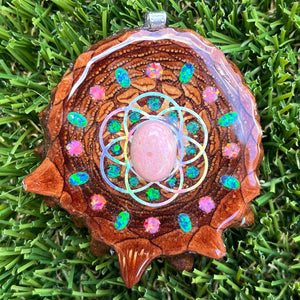 Our handmade pendants are crafted from sustainably wild-gathered Knobcone Pinecones. Every Aura Pinecone is carefully dried, aged, and cross-sectioned before being meticulously designed.