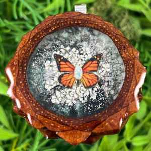 Our handmade pendants are crafted from sustainably wild-gathered Knobcone Pinecones. Every Aura Pinecone is carefully dried, aged, and cross-sectioned before being meticulously designed.