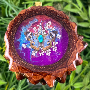 Our handmade pendants are crafted from sustainably wild-gathered Knobcone Pinecones. Every Aura Pinecone is carefully dried, aged, and cross-sectioned before being meticulously designed.