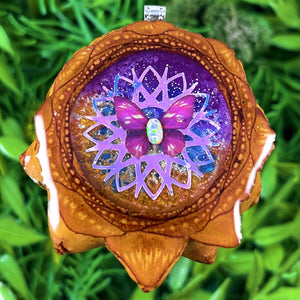 Our handmade pendants are crafted from sustainably wild-gathered Knobcone Pinecones. Every Aura Pinecone is carefully dried, aged, and cross-sectioned before being meticulously designed.