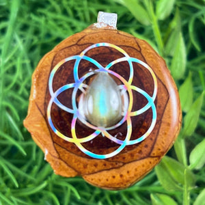 Our handmade pendants are crafted from sustainably wild-gathered Knobcone Pinecones. Every Aura Pinecone is carefully dried, aged, and cross-sectioned before being meticulously designed.