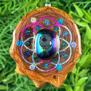 Our handmade pendants are crafted from sustainably wild-gathered Knobcone Pinecones. Every Aura Pinecone is carefully dried, aged, and cross-sectioned before being meticulously designed.