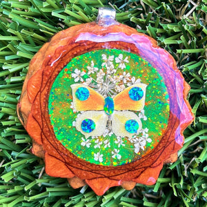 Our handmade pendants are crafted from sustainably wild-gathered Knobcone Pinecones. Every Aura Pinecone is carefully dried, aged, and cross-sectioned before being meticulously designed.