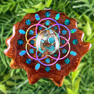 Our handmade pendants are crafted from sustainably wild-gathered Knobcone Pinecones. Every Aura Pinecone is carefully dried, aged, and cross-sectioned before being meticulously designed.