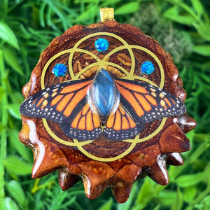 Our handmade pendants are crafted from sustainably wild-gathered Knobcone Pinecones. Every Aura Pinecone is carefully dried, aged, and cross-sectioned before being meticulously designed.