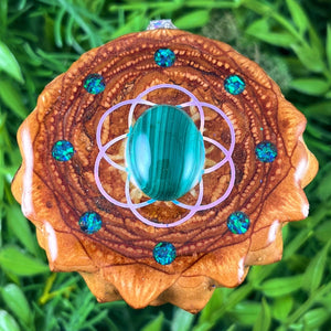 Our handmade pendants are crafted from sustainably wild-gathered Knobcone Pinecones. Every Aura Pinecone is carefully dried, aged, and cross-sectioned before being meticulously designed.