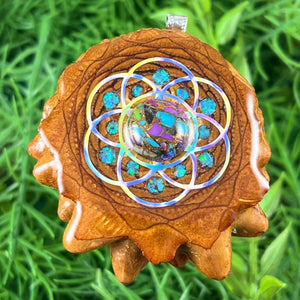 Our handmade pendants are crafted from sustainably wild-gathered Knobcone Pinecones. Every Aura Pinecone is carefully dried, aged, and cross-sectioned before being meticulously designed.