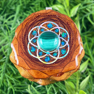 Our handmade pendants are crafted from sustainably wild-gathered Knobcone Pinecones. Every Aura Pinecone is carefully dried, aged, and cross-sectioned before being meticulously designed.