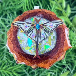 Our handmade pendants are crafted from sustainably wild-gathered Knobcone Pinecones. Every Aura Pinecone is carefully dried, aged, and cross-sectioned before being meticulously designed.