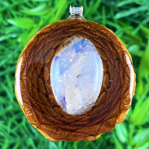 Our handmade pendants are crafted from sustainably wild-gathered Knobcone Pinecones. Every Aura Pinecone is carefully dried, aged, and cross-sectioned before being meticulously designed.