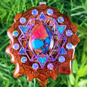 Our handmade pendants are crafted from sustainably wild-gathered Knobcone Pinecones. Every Aura Pinecone is carefully dried, aged, and cross-sectioned before being meticulously designed.