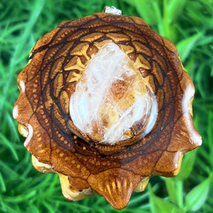 Our handmade pendants are crafted from sustainably wild-gathered Knobcone Pinecones. Every Aura Pinecone is carefully dried, aged, and cross-sectioned before being meticulously designed.