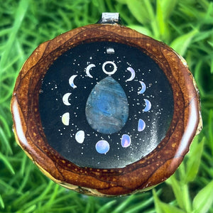 Our handmade pendants are crafted from sustainably wild-gathered Knobcone Pinecones. Every Aura Pinecone is carefully dried, aged, and cross-sectioned before being meticulously designed.
