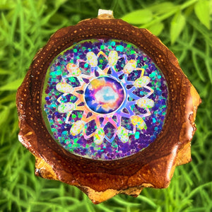 Our handmade pendants are crafted from sustainably wild-gathered Knobcone Pinecones. Every Aura Pinecone is carefully dried, aged, and cross-sectioned before being meticulously designed.