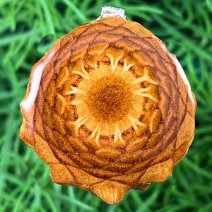 Our handmade pendants are crafted from sustainably wild-gathered Knobcone Pinecones. Every Aura Pinecone is carefully dried, aged, and cross-sectioned before being meticulously designed.