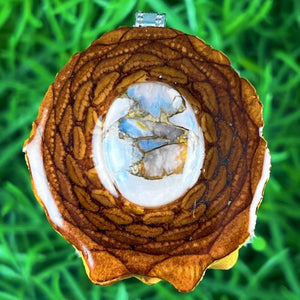 Our handmade pendants are crafted from sustainably wild-gathered Knobcone Pinecones. Every Aura Pinecone is carefully dried, aged, and cross-sectioned before being meticulously designed.