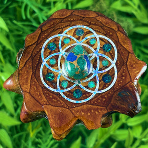Our handmade pendants are crafted from sustainably wild-gathered Knobcone Pinecones. Every Aura Pinecone is carefully dried, aged, and cross-sectioned before being meticulously designed.