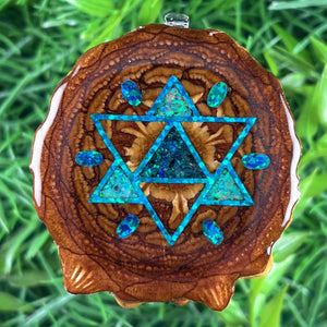 Our handmade pendants are crafted from sustainably wild-gathered Knobcone Pinecones. Every Aura Pinecone is carefully dried, aged, and cross-sectioned before being meticulously designed.