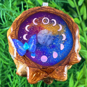 Our handmade pendants are crafted from sustainably wild-gathered Knobcone Pinecones. Every Aura Pinecone is carefully dried, aged, and cross-sectioned before being meticulously designed.