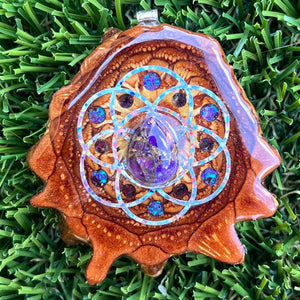 Our handmade pendants are crafted from sustainably wild-gathered Knobcone Pinecones. Every Aura Pinecone is carefully dried, aged, and cross-sectioned before being meticulously designed.