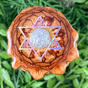 Our handmade pendants are crafted from sustainably wild-gathered Knobcone Pinecones. Every Aura Pinecone is carefully dried, aged, and cross-sectioned before being meticulously designed.