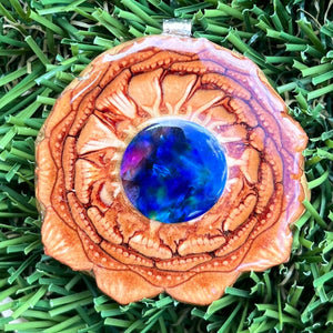 Our handmade pendants are crafted from sustainably wild-gathered Knobcone Pinecones. Every Aura Pinecone is carefully dried, aged, and cross-sectioned before being meticulously designed.