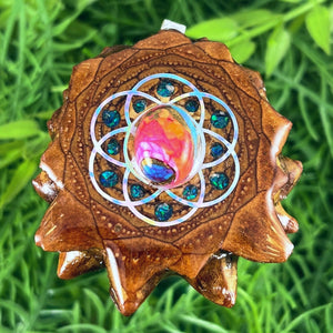 Multi Ammolite & Crushed Opal with 64 Star Tetrahedron - Aura Pinecones