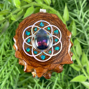 Multi Ammolite with Crushed Opal and Seed of Life - Aura Pinecones