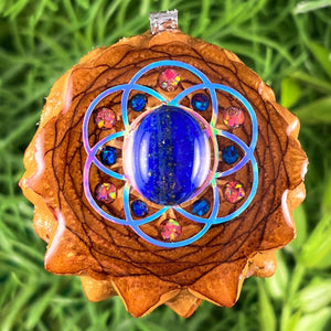 Our handmade pendants are crafted from sustainably wild-gathered Knobcone Pinecones. Every Aura Pinecone is carefully dried, aged, and cross-sectioned before being meticulously designed.