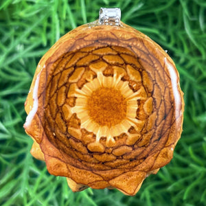 Our handmade pendants are crafted from sustainably wild-gathered Knobcone Pinecones. Every Aura Pinecone is carefully dried, aged, and cross-sectioned before being meticulously designed.