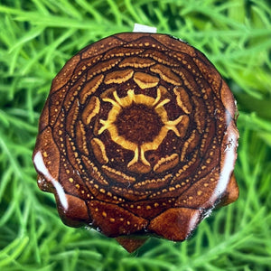 Our handmade pendants are crafted from sustainably wild-gathered Knobcone Pinecones. Every Aura Pinecone is carefully dried, aged, and cross-sectioned before being meticulously designed.