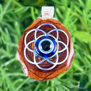 Our handmade pendants are crafted from sustainably wild-gathered Knobcone Pinecones. Every Aura Pinecone is carefully dried, aged, and cross-sectioned before being meticulously designed.