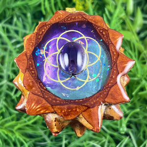 Our handmade pendants are crafted from sustainably wild-gathered Knobcone Pinecones. Every Aura Pinecone is carefully dried, aged, and cross-sectioned before being meticulously designed.