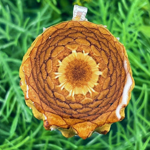 Our handmade pendants are crafted from sustainably wild-gathered Knobcone Pinecones. Every Aura Pinecone is carefully dried, aged, and cross-sectioned before being meticulously designed.