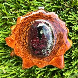 Our handmade pendants are crafted from sustainably wild-gathered Knobcone Pinecones. Every Aura Pinecone is carefully dried, aged, and cross-sectioned before being meticulously designed.