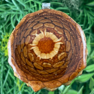 Our handmade pendants are crafted from sustainably wild-gathered Knobcone Pinecones. Every Aura Pinecone is carefully dried, aged, and cross-sectioned before being meticulously designed.