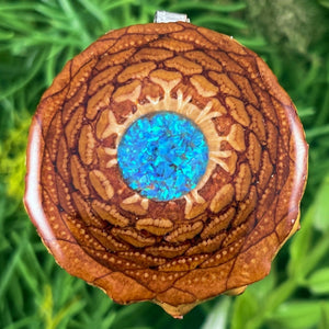 Our handmade pendants are crafted from sustainably wild-gathered Knobcone Pinecones. Every Aura Pinecone is carefully dried, aged, and cross-sectioned before being meticulously designed.