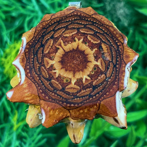 Our handmade pendants are crafted from sustainably wild-gathered Knobcone Pinecones. Every Aura Pinecone is carefully dried, aged, and cross-sectioned before being meticulously designed.