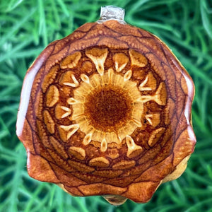 Our handmade pendants are crafted from sustainably wild-gathered Knobcone Pinecones. Every Aura Pinecone is carefully dried, aged, and cross-sectioned before being meticulously designed.