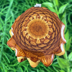 Our handmade pendants are crafted from sustainably wild-gathered Knobcone Pinecones. Every Aura Pinecone is carefully dried, aged, and cross-sectioned before being meticulously designed.