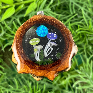 Our handmade pendants are crafted from sustainably wild-gathered Knobcone Pinecones. Every Aura Pinecone is carefully dried, aged, and cross-sectioned before being meticulously designed.