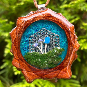 Our handmade pendants are crafted from sustainably wild-gathered Knobcone Pinecones. Every Aura Pinecone is carefully dried, aged, and cross-sectioned before being meticulously designed.